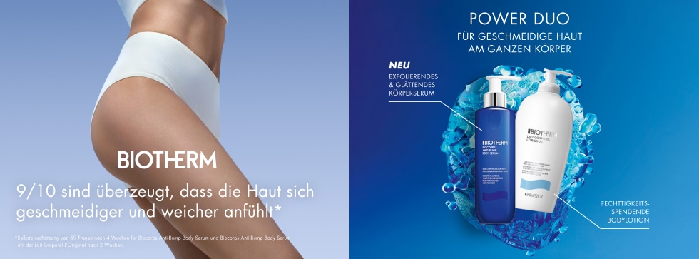Die Haut ist jeden Tag zahlreichen Belastungen ausgesetzt. Die Biotherm Körperpflege versorgt die Haut mit wertvollen Inhaltsstoffen und eignet sich für normale bis trockene und empfindliche Haut. Die Körperpflege-Linie Lait Corporel verwöhnt Ihre Haut mit intensiv feuchtigkeitsspendenden Inhaltsstoffen. Die ikonische Lait Corporel Body Lotion spendet trockener Haut langanhaltende Feuchtigkeit, glättet und sorgt für ein unwiderstehlich zartes Hautgefühl. Zugleich verwöhnt sie die Sinne mit ihrem mediterranen ikonischen Zitrus-Duft. Für besonders trockene und strapazierte Haut empfiehlt sich die Biotherm Körpercreme Beurre Corporel. Damit auch die zarte Haut der Lippen vor Trockenheit bewahrt wird, pflegt sie der Beurre de Lèvers Lippenbalsam mit wertvollen pflanzlichen Ölen.