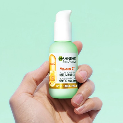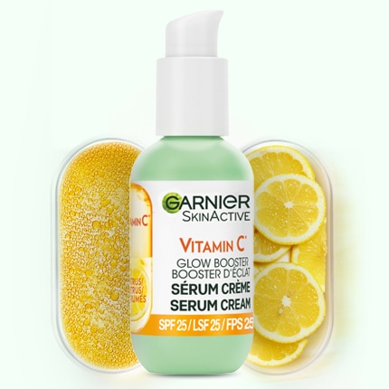 Die Garnier SkinActive Vitamin C Serum Crème mit LSF 25, angereichert mit Vitamin C, sorgt für einen boostenden Glow-Effekt in nur 3 Tagen und fördert ein strahlenderes und ebenmäßigeres Hautbild.