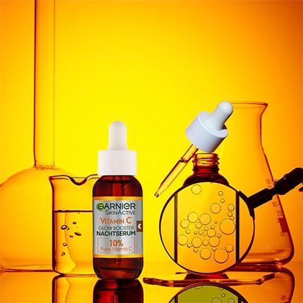 Das Garnier SkinActive Vitamin C Glow Booster Nachtserum mit 10% purem Vitamin C sowie Hyaluronsäure sorgt für strahlendere, gleichmäßigere und glattere Haut.
