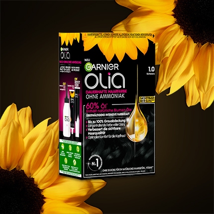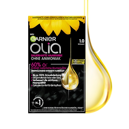 Angenehmer Duft und super Farbergebnis Garnier Olia ist eine dauerhafte Coloration ohne Ammoniak und mit 60 % Öl in der Colorationscreme. Garnier verspricht eine intensive Farbkraft, sichtbar mehr Glanz und eine Verbesserung der sichtbaren Haarqualität. Die Farbe riecht sehr angenehm und lässt sich einfach auftragen und verteilen. Das Ergebnis ist schön gleichmäßig und sieht natürlich aus. Tolles Produkt - wird nachgekauft.